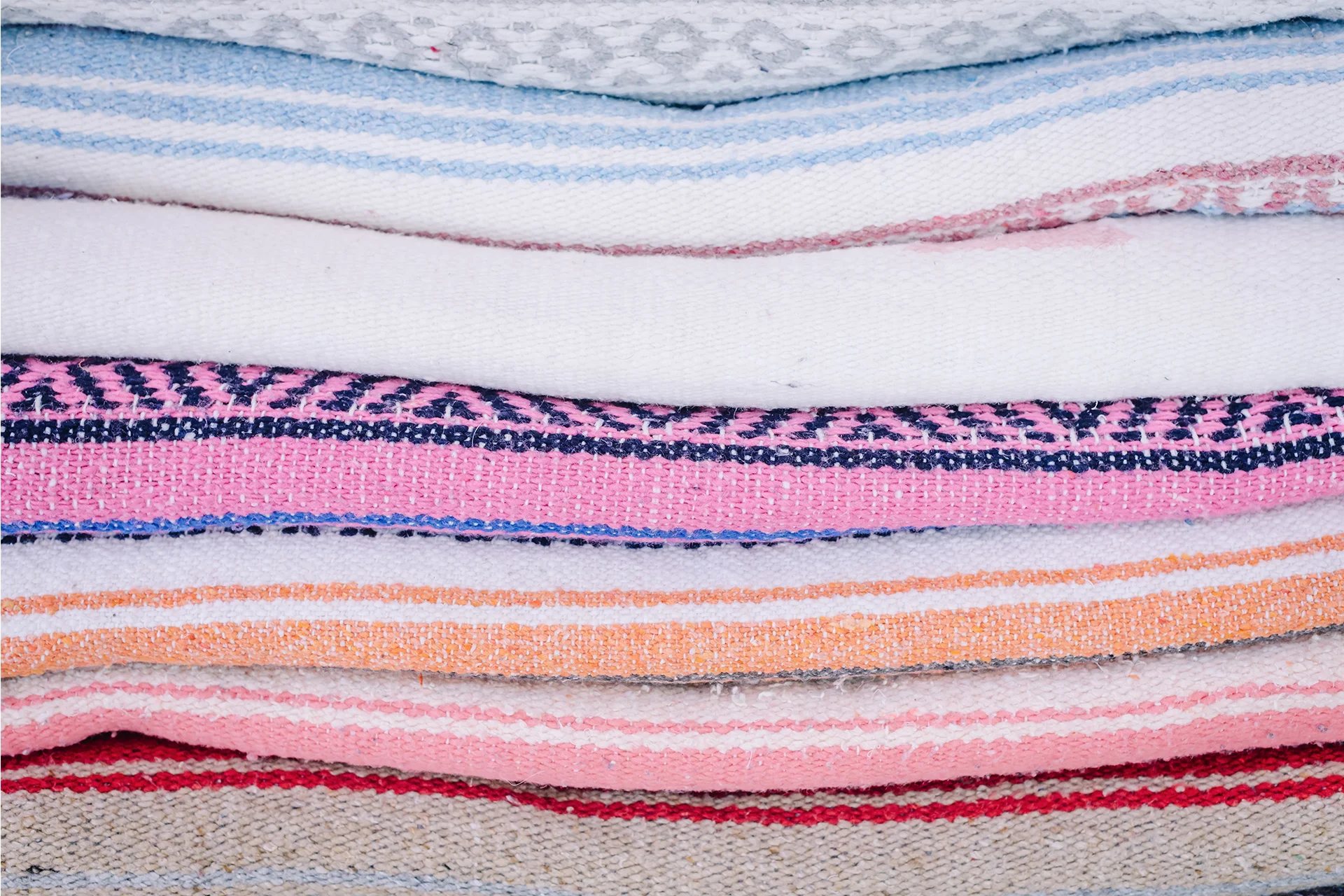 GATHER yoga props. You’ll need 4 cotton Mexican blankets, a yoga strap, and sticky mat. HELPFUL TIPS: If you do not have these props, blankets can be substituted by large, thick towels or blanket equivalent; blocks by plastic containers or books; and a yoga strap by a bathrobe belt or a couple of neckties.
